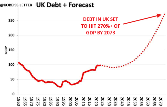 2073年までに、英国の債務はGDPの274%に達する見込みです。
