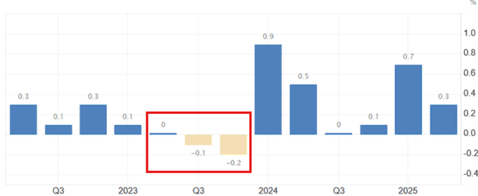 英国のGDP成長率は2024年第3四半期に完全に横ばいとなり、その後マイナスに転じました。