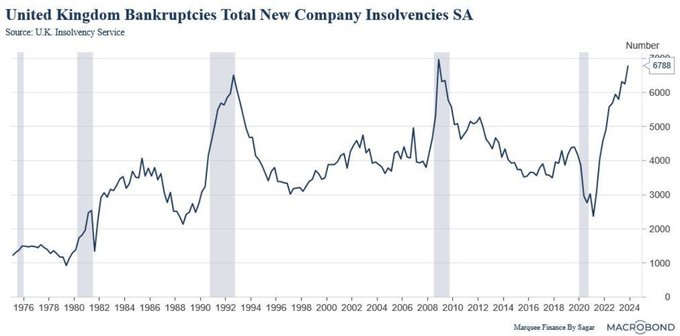 最後に、2024年に破産件数が2008年の水準に達したため、イングランド銀行は手を縛られた状態となりました。