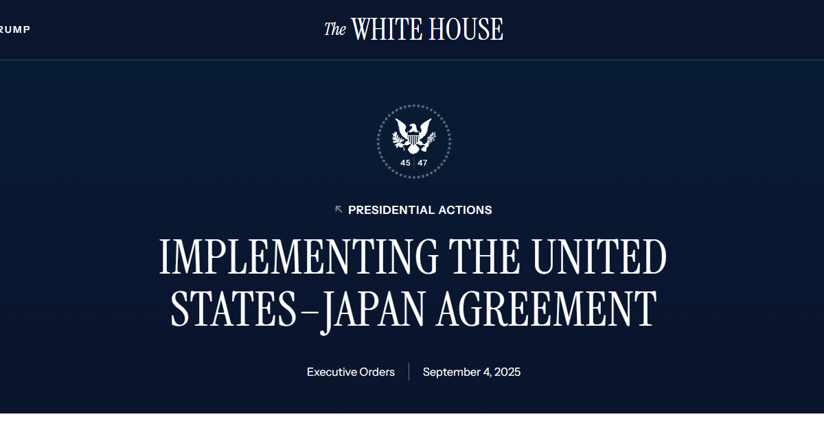 第4条:自動車及び自動車部品 (a) 本条 (b) 項に規定する連邦官報公告の公示日をもって、2025年3月26日付大統領令第10908号 (米国への自動車及び自動車部品の輸入調整)に基づき日本製品に課される追加第232条従価税に代わり、改正後の大統領令10908号に基づき関税の対象となる日本製品の自動車又は自動車部品に適用される追加従価税率は、当該製品の欄1関税率によって決定される。 第1欄の関税率が15%未満の日本製品については、当該製品の第1欄の関税率と、本命令に基づく自動車または自動車部品に対するセクション232の追加従価関税率の合計は15%とする。 第1欄の関税率が15%以上である日本製品の追加自動車または自動車部品セクション232従価税率は、ゼロパーセントとする。