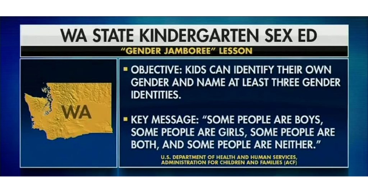 ワシントン州の幼稚園児は、「ジェンダー・ジャンボリー」と呼ばれる授業を強制されています。彼らは性別を選択するよう語りました、混乱を受け入れるよう教えられ、保護者は排除されています。これは教育ではありません。洗脳です。