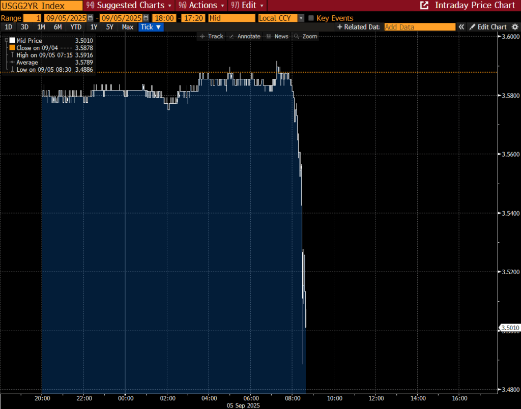 利回りは急落し、50bpの利下げ確率が12%に跳ね上がりました。