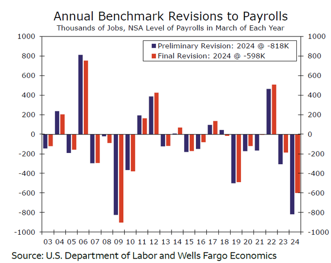 雇用統計の修正値は、報告値から最大95万件の減少となる見込みです。