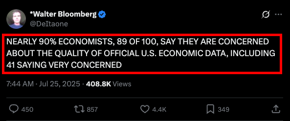 2025年7月、米国経済データの信頼性に関する世論調査が実施されました。