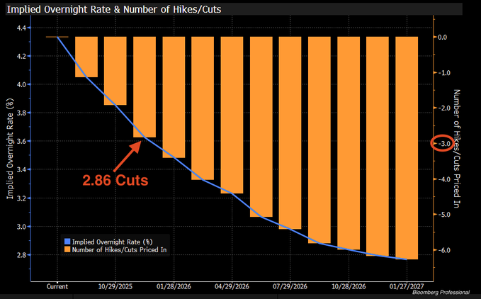 FRBは再び追いつく必要に迫られており、市場は年末までに3回の利下げを織り込み始めています。