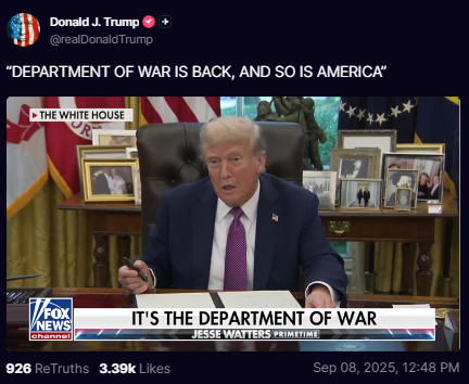 「戦争省が復活し、アメリカも復活する」