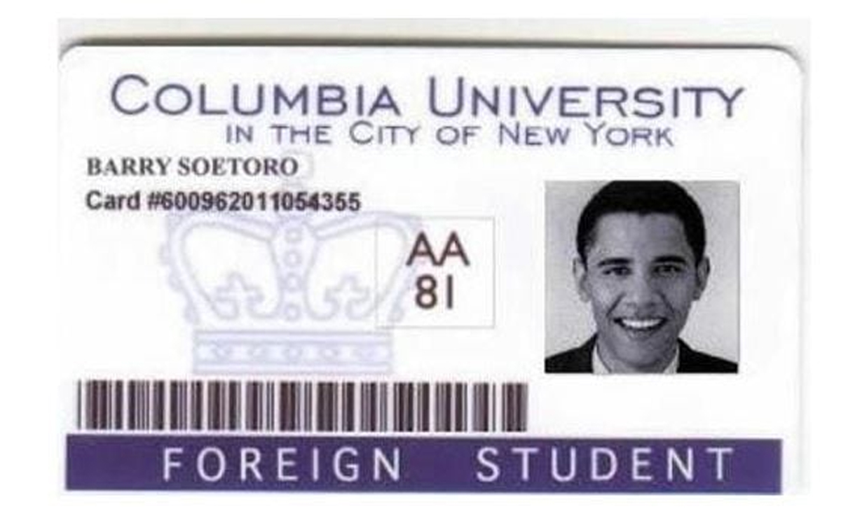 彼のコロンビア大学の学生証には「外国人学生」と記載されています(ご判断にお任せします)。