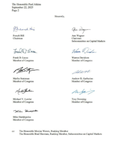 今週、議員各位より証券取引委員会(SEC)宛てに送付された書簡を以下にご紹介します。