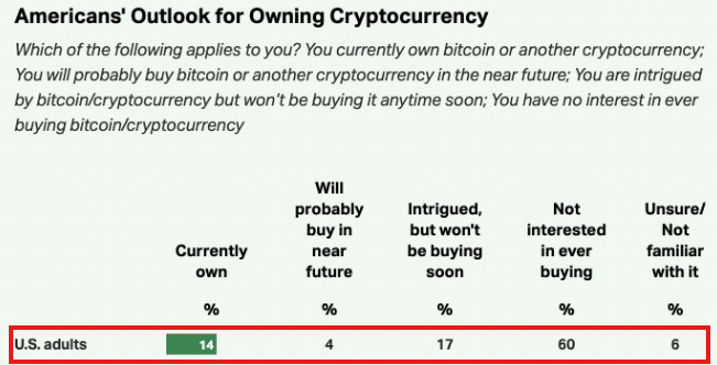 現在、米国の成人のうちBitcoinやその他の暗号資産を所有しているのはわずか14%です。
