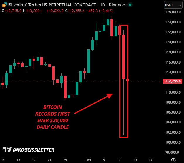 清算が進む中、Bitcoinは1日あたり2万ドルのローソク足を記録しました。