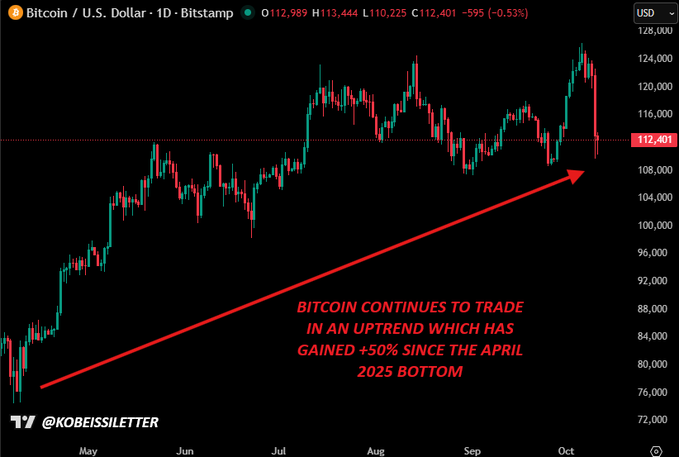 Bitcoinは上昇トレンドを継続しており、2025年4月の底値から50%以上上昇