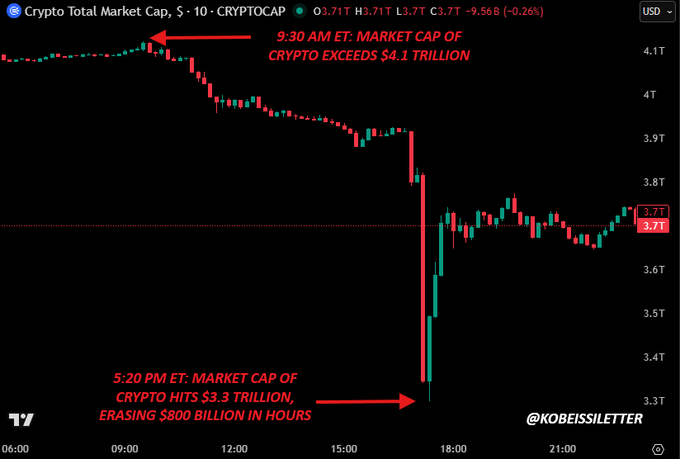 これにより、Bitcoinの時価総額だけで3800億ドルの変動がたった1日で生じました。