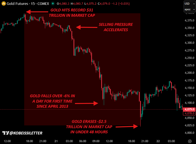 金と銀の市場価値は、わずか24時間強の取引で合計3兆ドル近く減少しました。