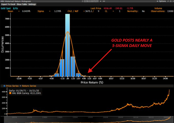 統計的に見ると、金価格の変動はほぼ5シグマ相当の出来事でした。
