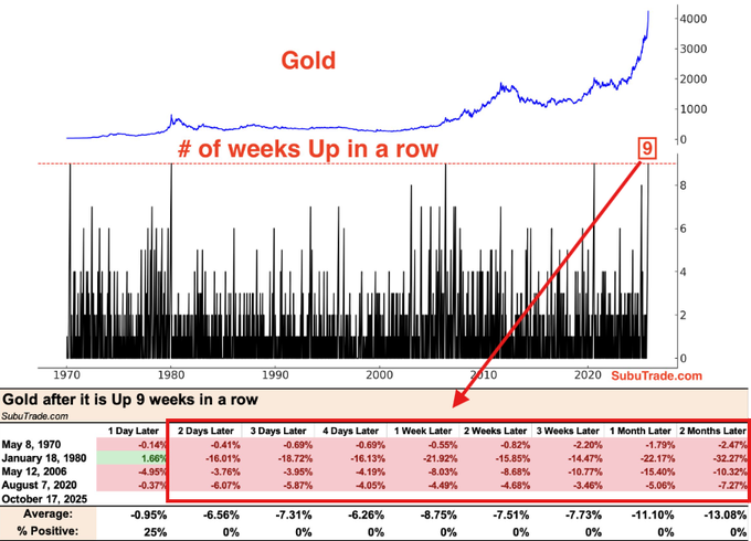 10月13日には、金の月間RSIが史上最高値となる91.8を記録しました。