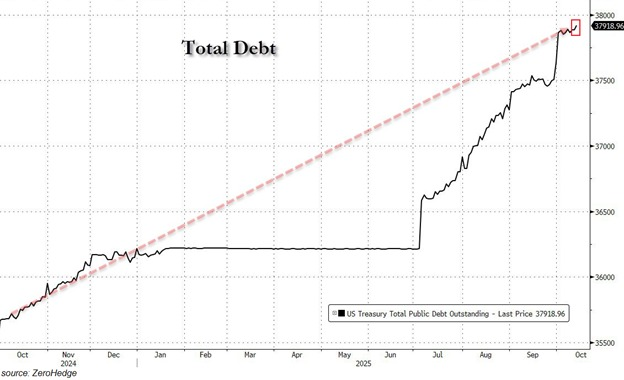 ⬛️ 米国財務省発行の公的債務総額(残高)直近価格:37,918.96