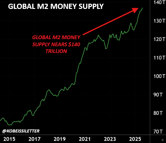 最後に、世界のM2マネー・サプライが史上初めて140兆ドルに達しようとしています。