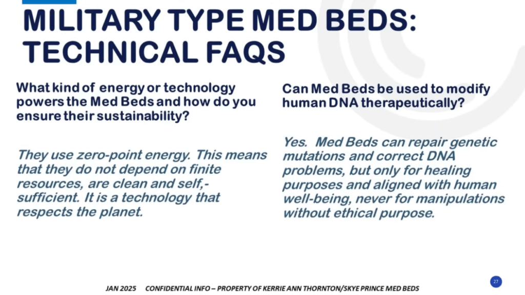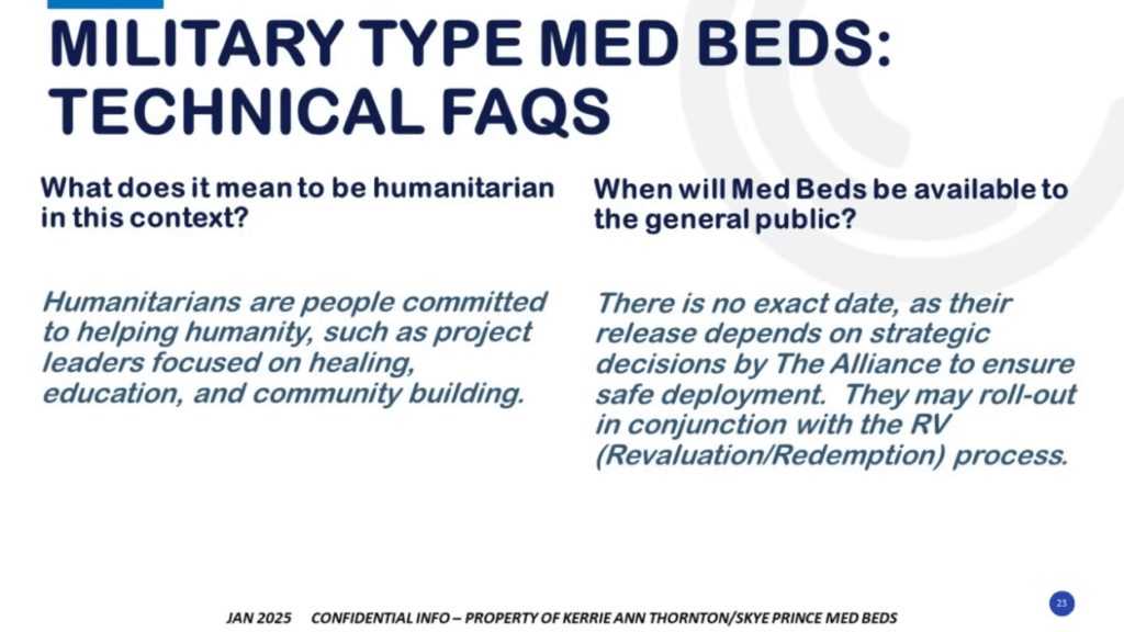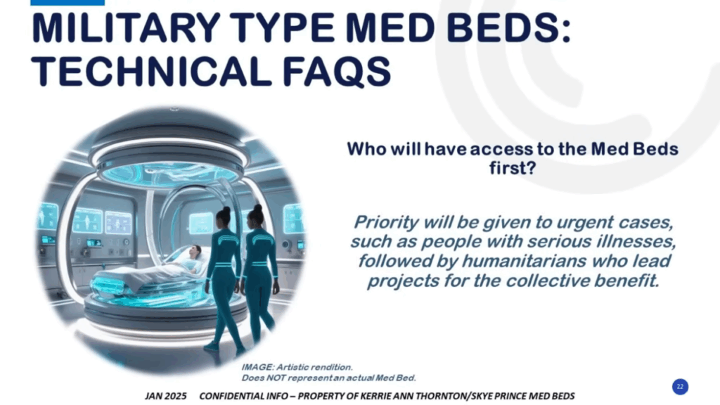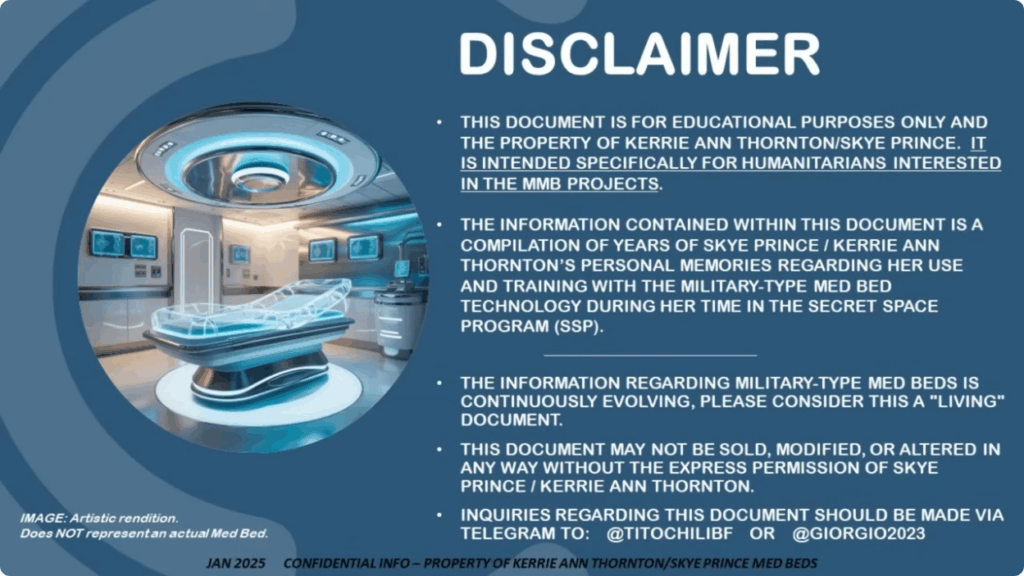 - ケリー・アン・ソーントン/スカイ・プリンスは、アライアンスの公式広報担当者として、メドベッドとその導入に関する検証済み情報の主要なソースであり続けております。