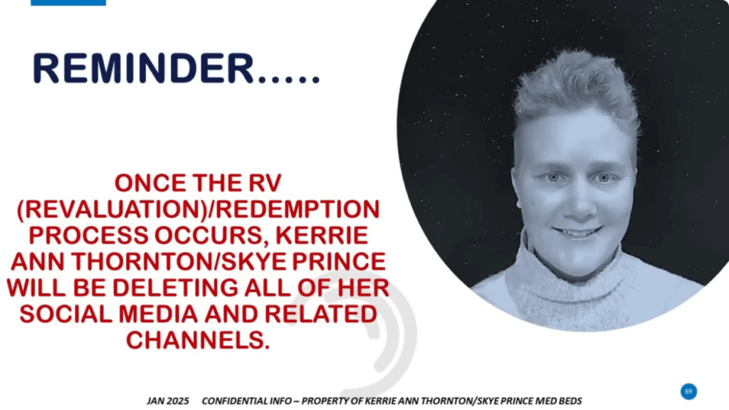 RV(再評価)および償還手続きが完了次第、ケリー・アン・ソーントン/スカイ・プリンス様は、ご自身のSNSおよび関連チャンネルをすべて削除いたします。