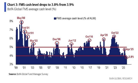Bank of AmericaグローバルFMS平均現金保有率(%)