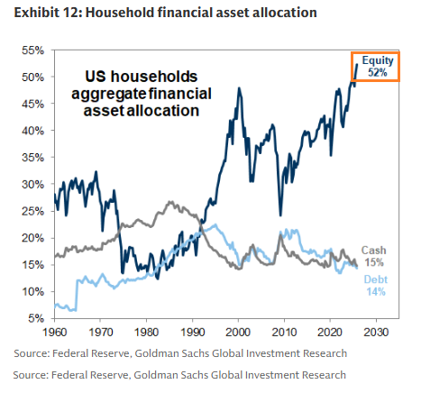 3 – 株式への資産配分、特に米国の方々においては過去最高水準に達している一方で、現金への配分は過去10年で最低水準となっています。