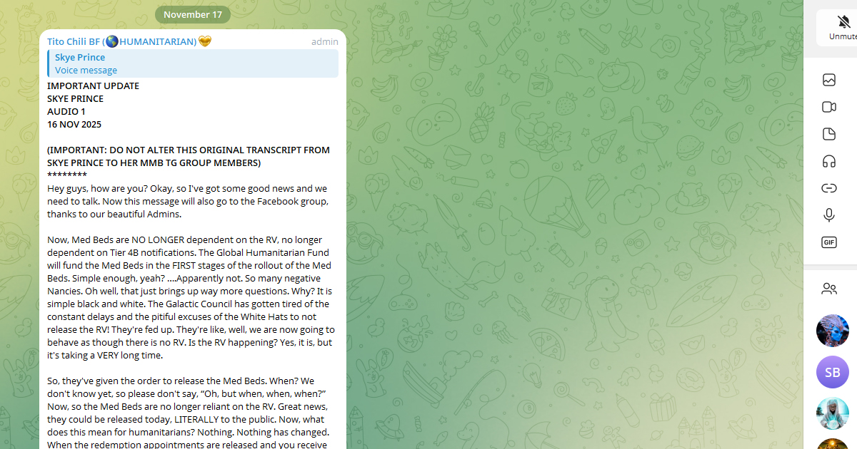 さて、本日午後遅くにこの件についてライブ配信を行う予定です。というのも、メドベッドが一般公開されず、RVも実現していない理由の一つは、メドベッドを駆動する量子コンピューターが、この現実世界で稼働を開始するためには、集合的意識が特定の周波数に達している必要があるからです。ご存知なかったでしょう? 私がこれほどまでに精神的な成長について強く訴え続けてきた理由がお分かりでしょうか? ご自身と向き合い、ご自身の周波数を高め、ご自身の意識を向上させてください。いかがでしょうか?