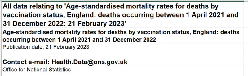 報道によれば:2023年2月21日、英国政府機関である国家統計局(ONS)は、2022年12月31日までのイングランドにおけるワクチン接種状況別の死亡者データをひっそりと公表した。