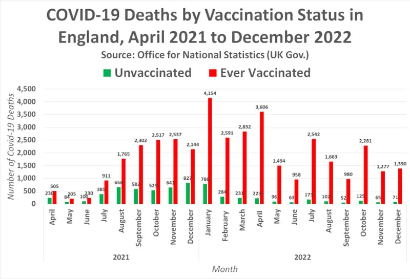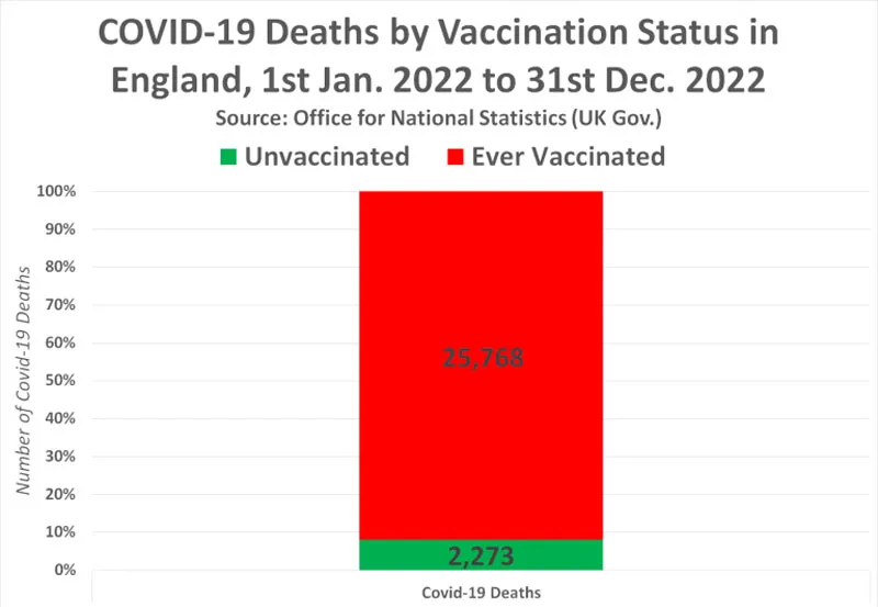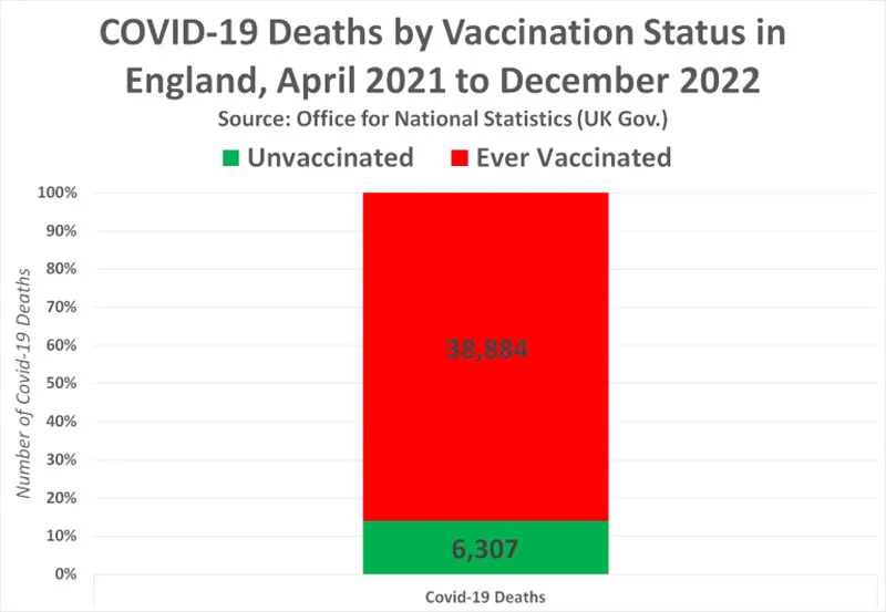 2021年4月1日から2022年12月31日の間にイングランドで死亡したCOVID感染者は45,191人で、そのうち38,884人がワクチン接種を受けた人であった。