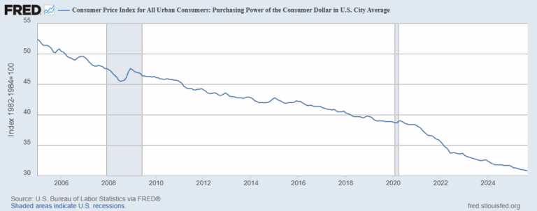 米ドルについてはいかがでしょうか。同じ期間において、その購買力はほぼ50%も低下しました。