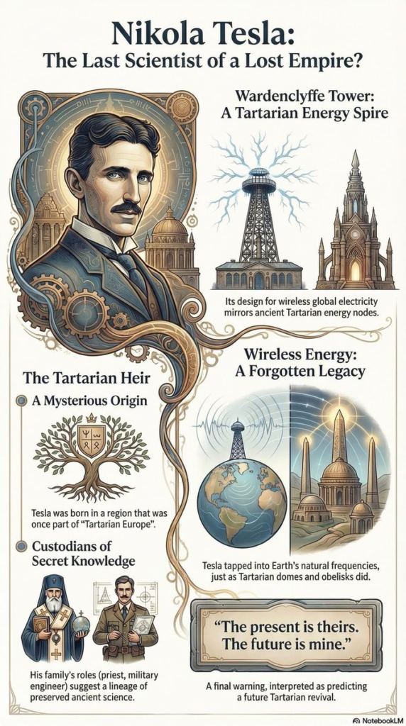 もしニコラ・テスラの最も偉大な発明がオリジナルではなく、失われた地球規模の技術の再発見であったとしたら、どうなるでしょうか?この過激な理論は、より深い物語の神秘的な序章として提示されています。それは、この先見の明を持つ発明家が、古代タルタリア文明とその地球規模のエネルギーネットワークによって掌握されていた、抑圧された科学を理解した数多くの天才たちの最後の1人であったと示唆しています。テスラはゼロから発明したのではなく、この忘れ去られた動力をリバースエンジニアリングしようとしたのです。