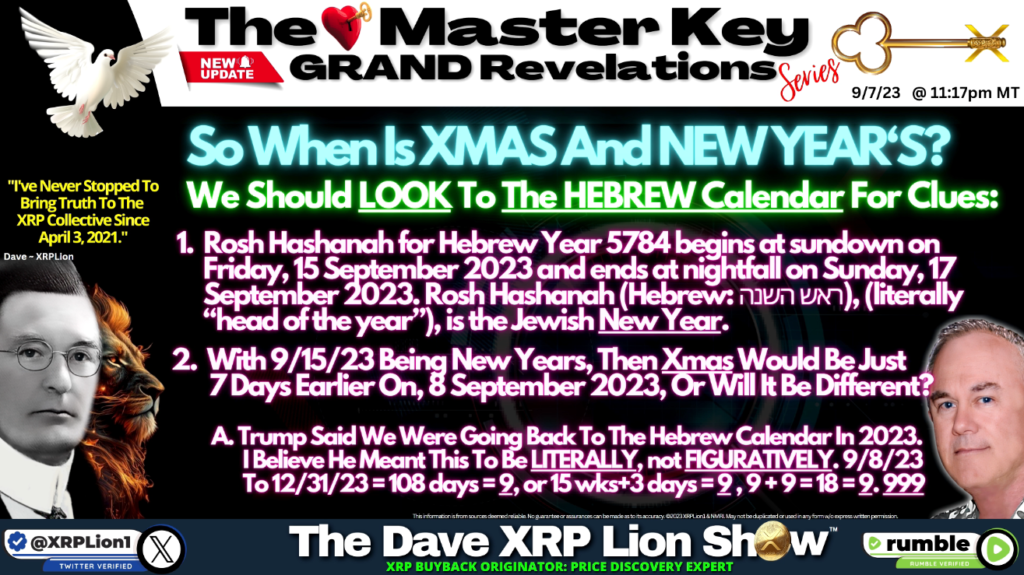 - A. トランプ氏は2023年にヘブライ暦に戻るおっしゃいました。これは比喩的ではなく文字通りの意味であったと思います。9月8日~12月31日=108日間=9、または15週間+3日間=9、9+9=18=9.999