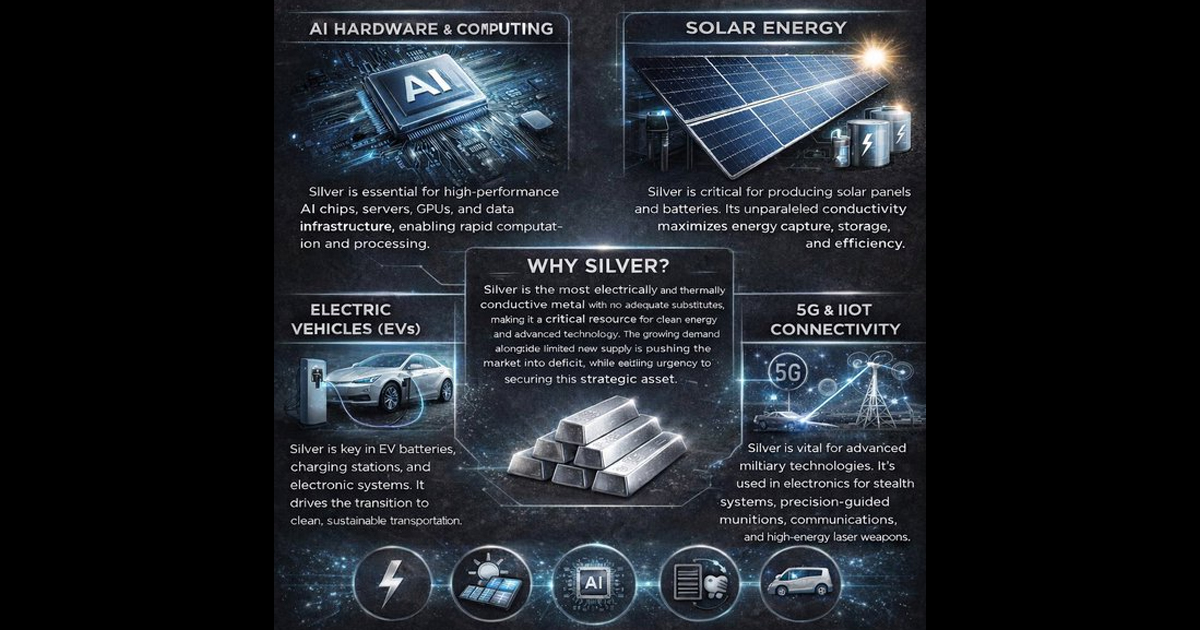 ⚙️ 銀はAI時代の生命線です。半導体、先端電子機器、衛星、兵器システム、医療技術、エネルギーインフラを支えています。