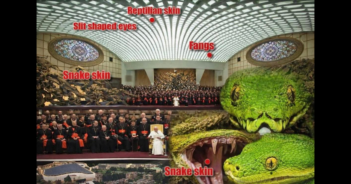 現在の体制は、子羊に仕えるものではなく、敬虔さや宗教を装いながら蛇を崇拝するよう技術的に設計されております。バチカンのパウロ6世の間など、特定の権力中枢の建築様式を注意深く観察すると、その真意は明らかです。頭部を模した外観、縦長の瞳孔を持つ目を模したステンドグラス、鱗と牙を再現した天井は、芸術的な偶然ではなく、教義の中心に爬虫類の存在を物理的に定着させるためのものです。黙示録12章に記された「欺きの洪水」は、今日、群れの信仰を加工し、謙虚な犠牲よりも華やかさ、秘密、恐怖を好む階層を養う構造を通じて顕現しています。