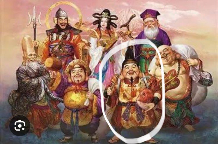 ~ 恵比寿(日本のみ):六柱の輸入神様。恵比寿のみ純粋に日本の神道伝統に由来し、他の神様は平安時代に仏教や道教を通じて輸入・受容されました。