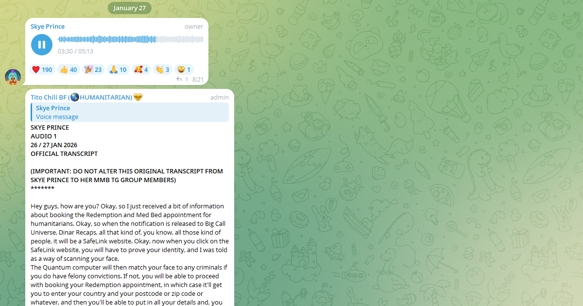 皆様、お元気でしょうか? さて、人道支援者向けの償還およびメドベッドの予約に関する情報を少しばかり入手いたしました。オッケー、ビッグ・コール・ユニバースやディナール・リキャップスなど、そうした皆様に向けた通知が発表されますが、その際はSafeLinkのウェブサイトとなります。SafeLinkのウェブサイトをクリックすると、ご本人確認が必要となります。聞いたところ、顔認証による方法となるようです。