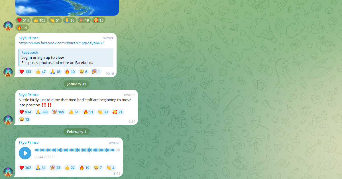現在の状況や情報、運動から、今週だと皆に語りましたため、メドベッドのスタッフ、ええと、第1陣のスタッフが既に移動し、今週中に人道的なメドベッドセッションを開始する位置に配置されつつあります。
