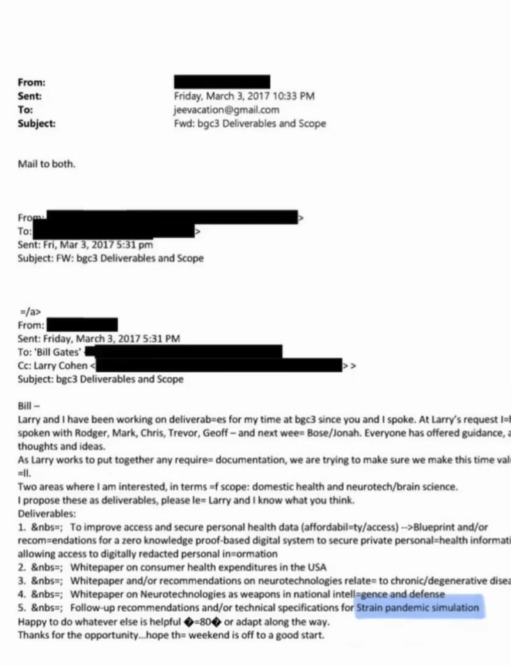 2017年にビル・ゲイツ氏宛てに送られたとされる電子メールには、BGC3プロジェクトにおけるパンデミック・シミュレーションと神経技術兵器に関する議論が記されています。再浮上した動画クリップと併せて、この内部メッセージは、世界が閉鎖されるずっと前から、誰が何を知っていたのかという緊急の疑問を提起しています。
