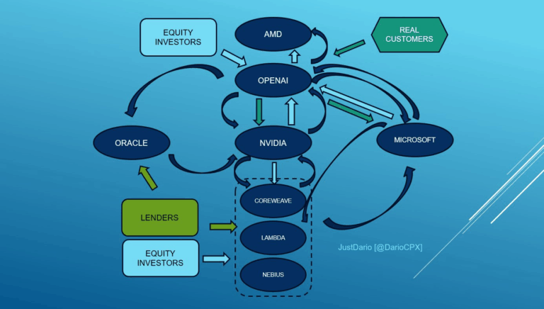 この一連の動向を最もよく示す例がCoreWeaveです。1月初旬に「CoreWeaveはAI分野のWeWorkである」と述べた後、市場は概ね無視しましたが、重要な出来事が発生しました。NvidiaがCoreWeaveに対し20億ドルの救済資金を投入したのです(「Nvidia、CoreWeaveに追加20億ドルを投資し新チップを提供」)。