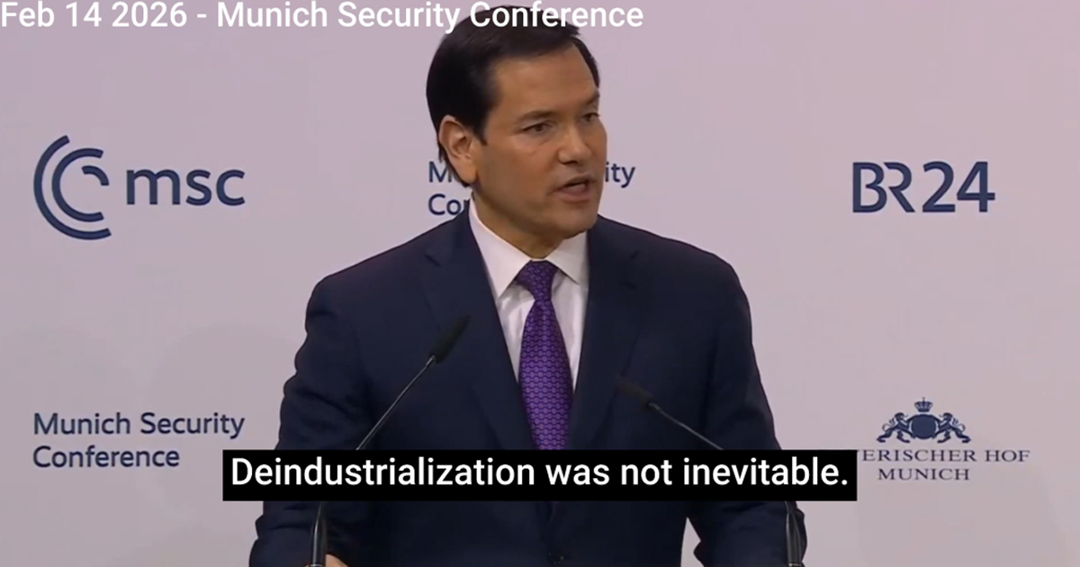 マルコ・ルビオ氏は、西側諸国の脱工業化は、1977年のCFR報告書で「統制された崩壊」が提唱されたことに端を発する、意図的な政策選択であったことを認めています。トランプ大統領の下、アメリカン・システムは復活しつつあり、ミュンヘンをはじめとする世界的な経済秩序に異議を唱えています。