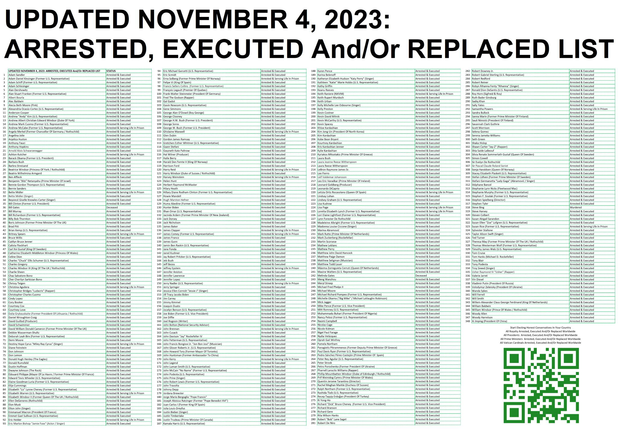| 3 | Adam Schiff(元米国議員) | 逮捕・処刑 |