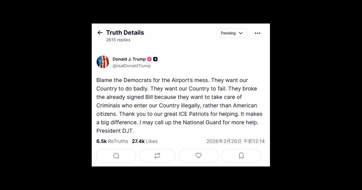 ソース:https://truthsocial.com/@realDonaldTrump/posts/116290465114134220