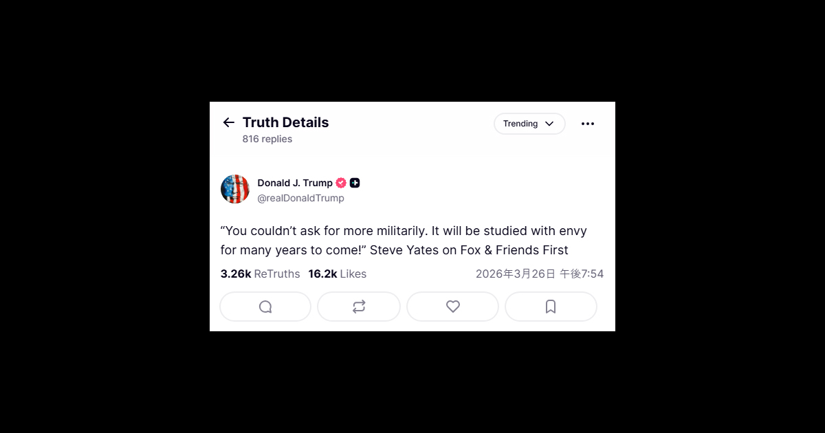ソース:https://truthsocial.com/@realDonaldTrump/posts/116295104061661845