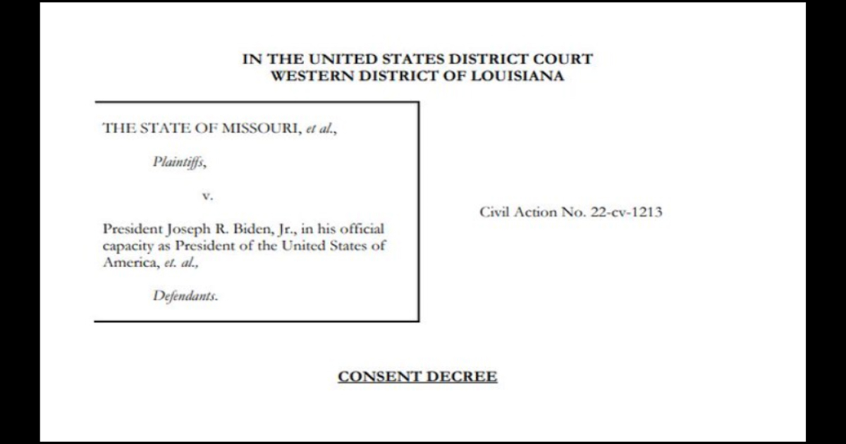 合衆国憲法修正第1条が復活しました。今回、それは法的拘束力を伴うものとなっています。歴史に名を残す判決において、ルイジアナ州西部地区連邦地方裁判所は、連邦政府の検閲体制に決定的な敗北を喫させました。長年にわたる法廷闘争の末、ミズーリ州はバイデン政権に対し、法的拘束力を持つ10年間の同意判決を強制しました。これは、政府内で最も積極的な検閲を行う3つの機関に歯止めをかける、稀有かつ強力な法的措置です。