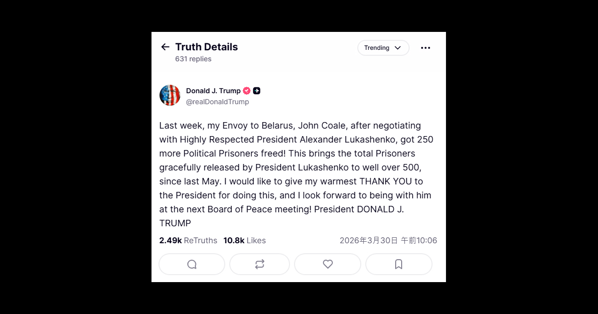 ソース:https://truthsocial.com/@realDonaldTrump/posts/116315443614484269