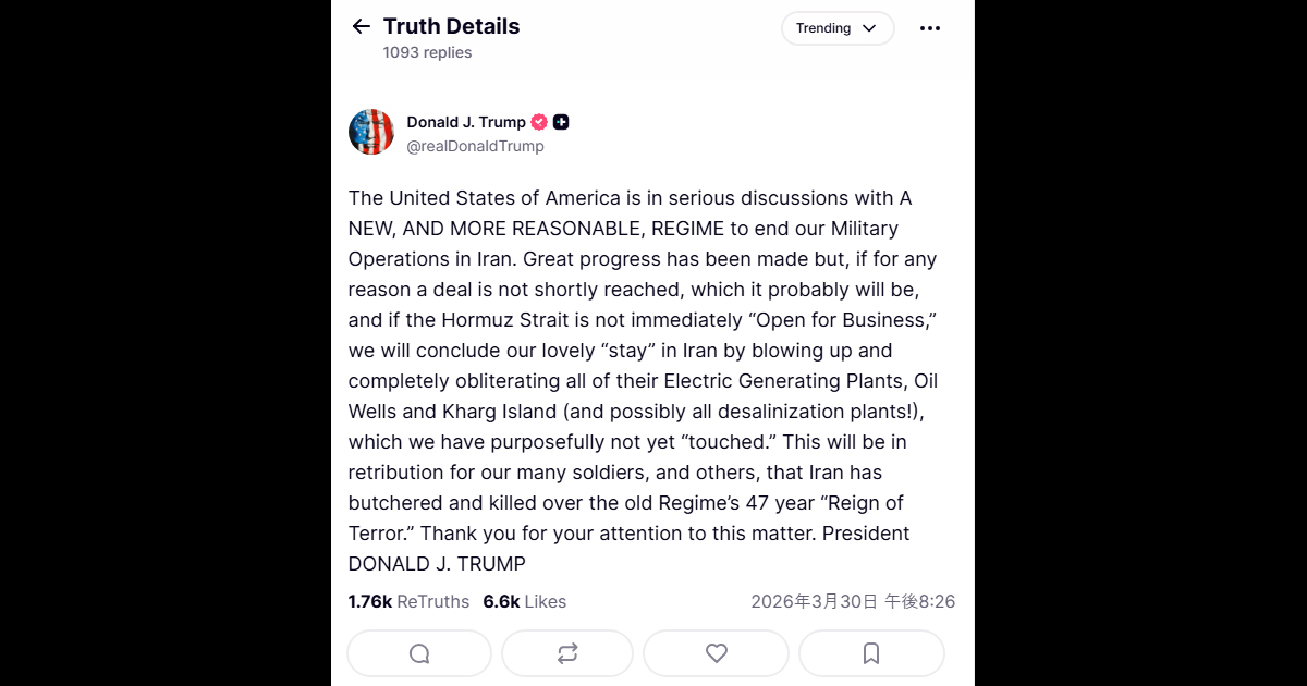 ソース:https://truthsocial.com/@realDonaldTrump/posts/116317880658472708