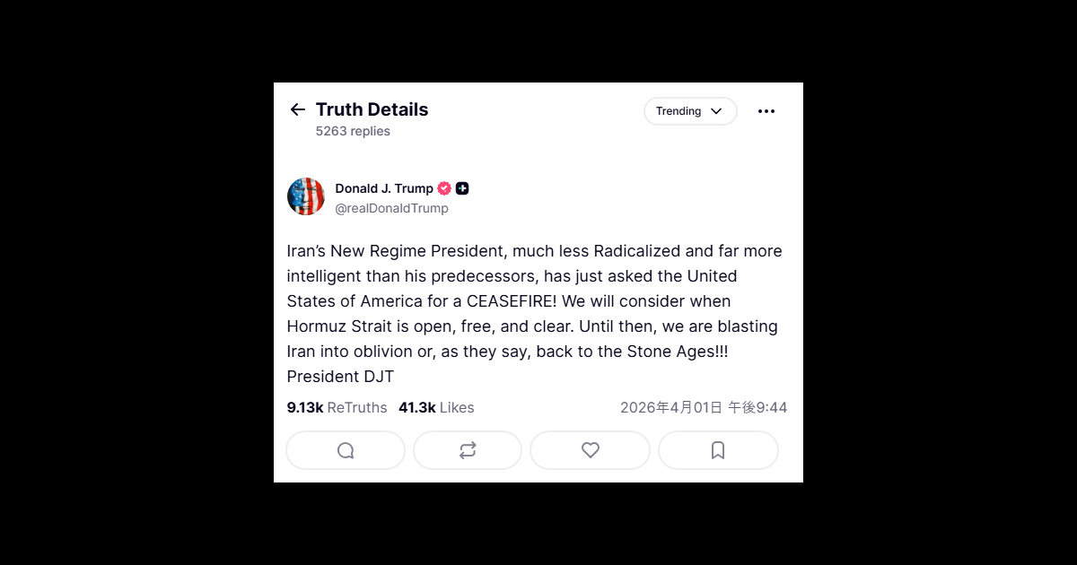 ソース:https://truthsocial.com/@realDonaldTrump/posts/116329512466946656