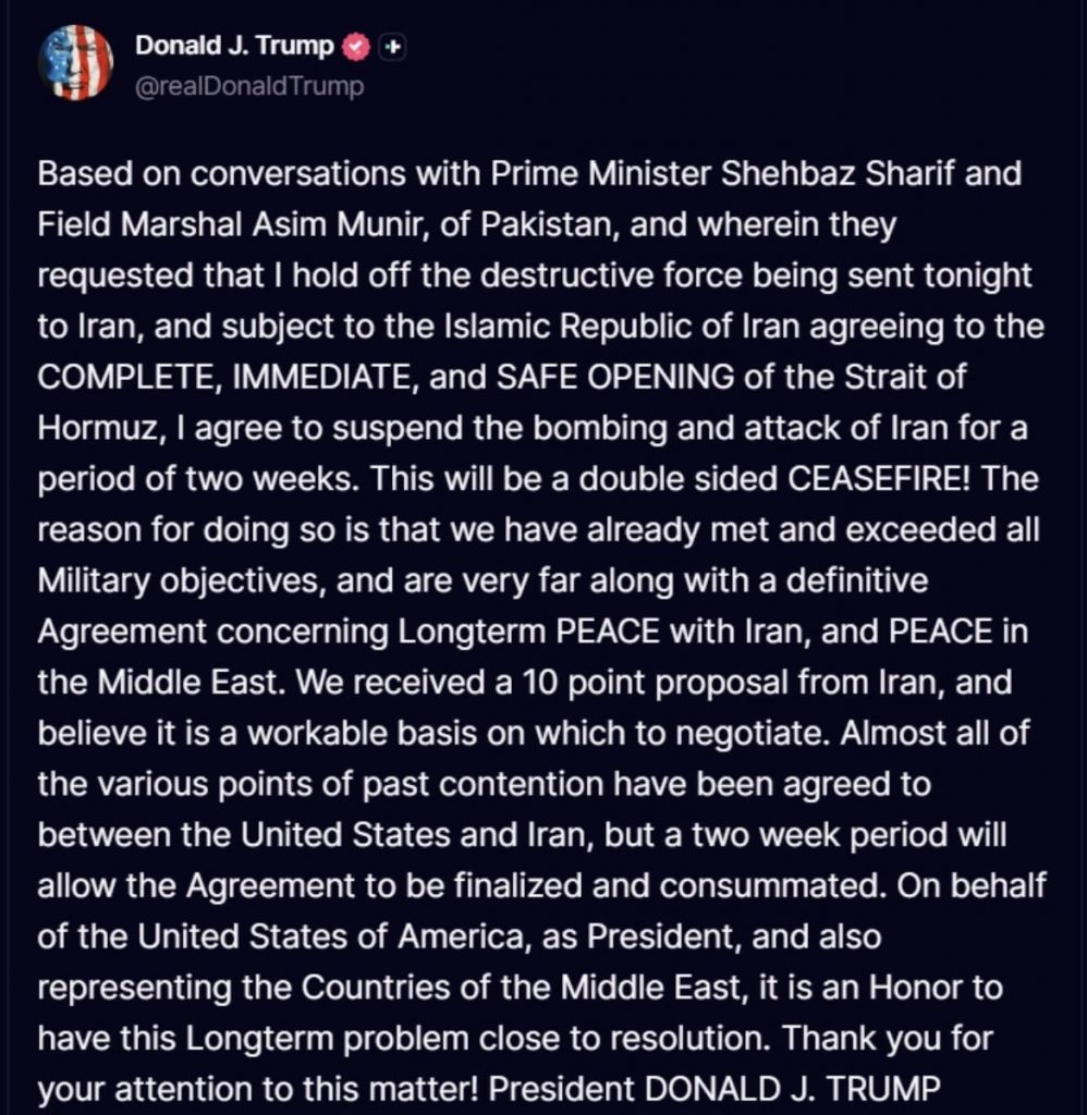 トランプ大統領は、イランに対し2週間の停戦を強要し、ホルムズ海峡の再開を実現させるとともに、米国の条件に基づく恒久的な合意に向けた土台を築きました。トランプ大統領が設定した期限と、インフラを破壊するという脅しを受けて、ムーラーたちは先に折れました。これは、米国のエネルギー安全保障と軍事的優位性を再び掌握させる、生々しい力の発揮です。