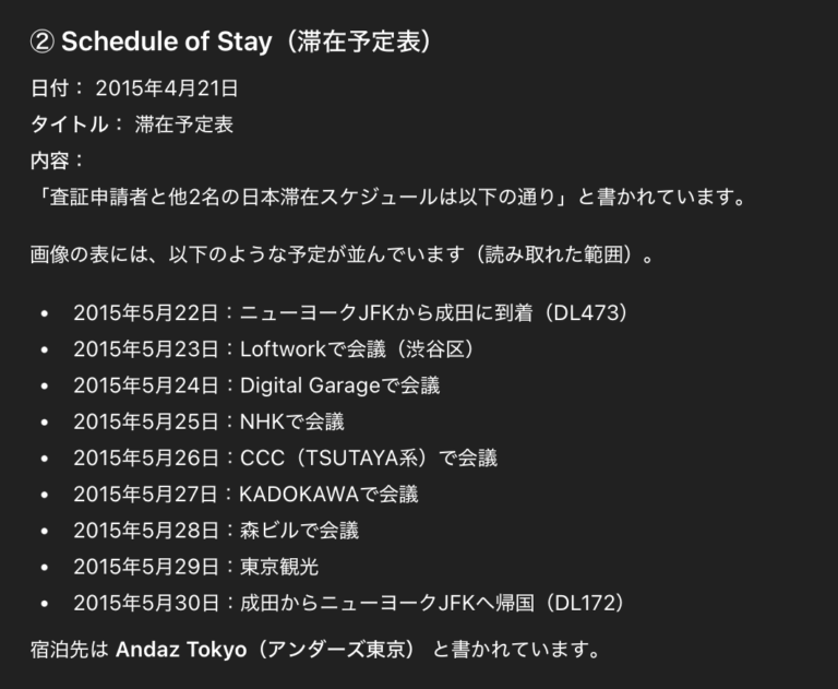 エプスタインは2015年5月22日から5月30日まで日本に滞在する予定で、その間にロフトワークやデジタルガレージ、NHK、CCC(TSUTAYA系)、KADOKAWA、森ビルとのミーティングも行うことになっていました。
