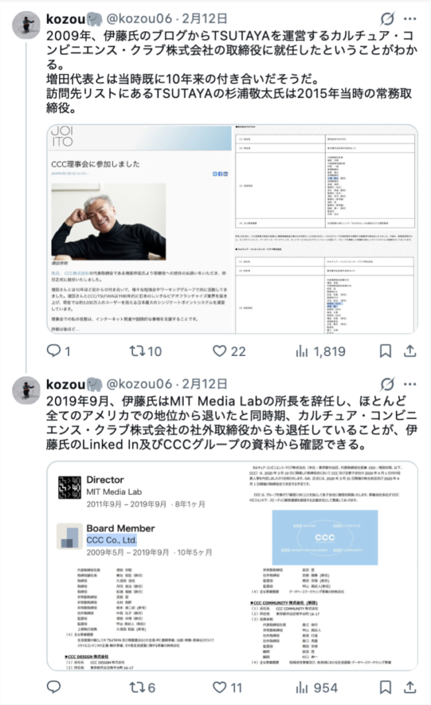 また、エプスタインとの面会を予定していた企業は、いずれも伊藤穰一と深い関係にあると指摘されています。