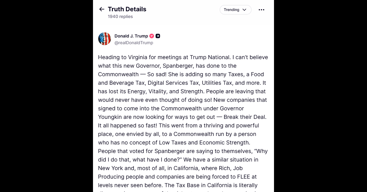 ソース:https://truthsocial.com/@realDonaldTrump/posts/116386141086849907